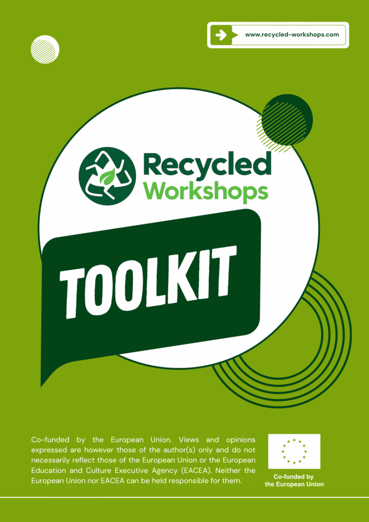 The Recycled Workshops Toolkit is a practical guide designed to help youth workers bring sustainability into action. It contains 15 ready-to-use tools and methods that make it easy to plan, deliver, and evaluate workshops with minimal waste and maximum creativity.